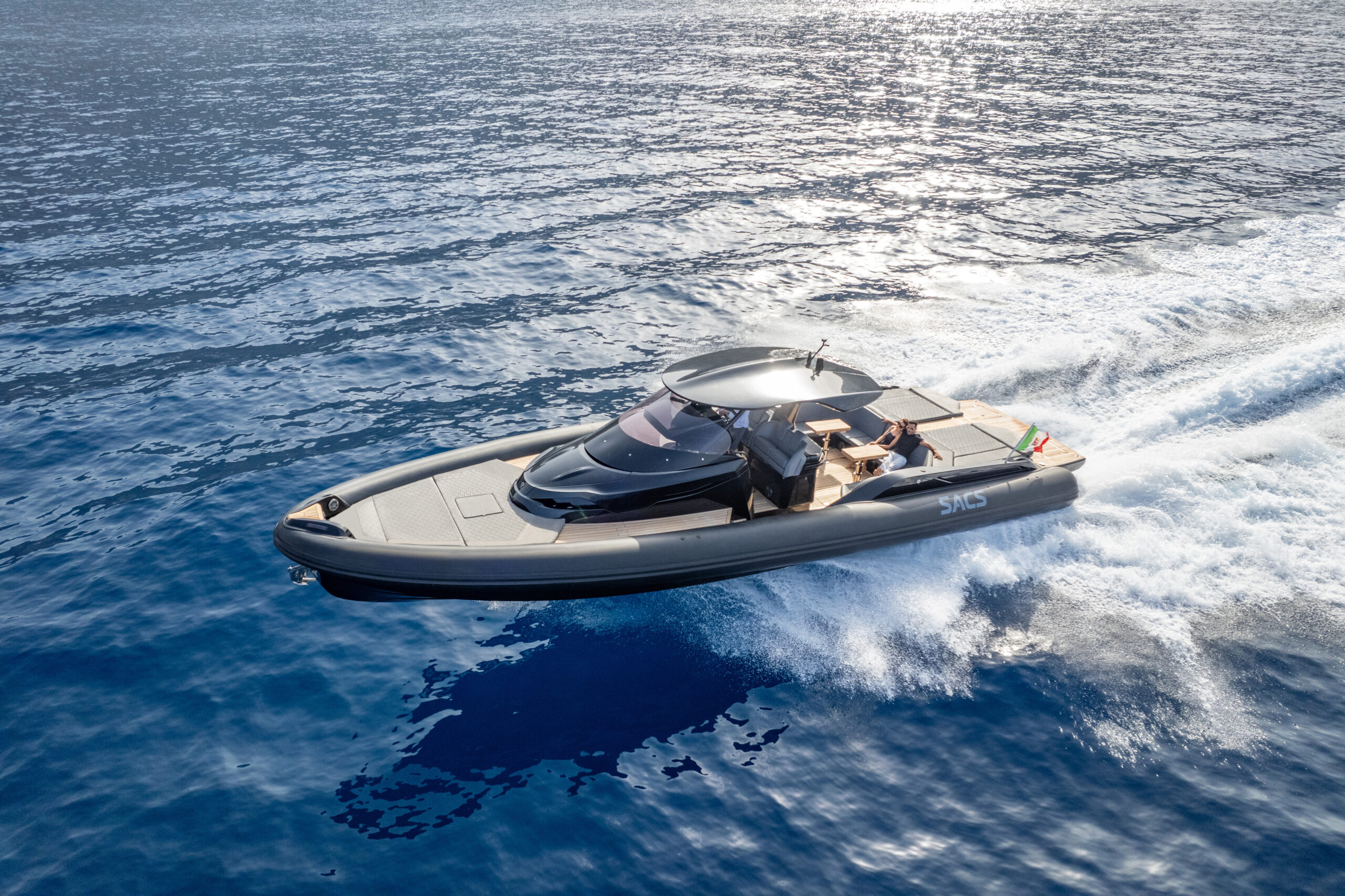 Eine Sacs Yacht verbindet mühelos Innovation und Vergnügen. Sacs wurde in Mailand gegründet und ist für seine herausragenden Leistungen bekannt. Das Unternehmen ist weltweit führend in der Maxirib-Produktion. Die RIBs der Rebel-Reihe kombinieren modernste Technologien (die zuvor im Militär- und Rettungsbereich eingesetzt wurden) mit eleganten, raffinierten Innenräumen. Während die SACS Strider-Reihe sich durch schlanke, klare, moderne Linien, sportliche, vielseitige Formen und ein gemütliches Interieur auszeichnet: Entworfen, um die Fahrt mit voller Begeisterung zu genießen.