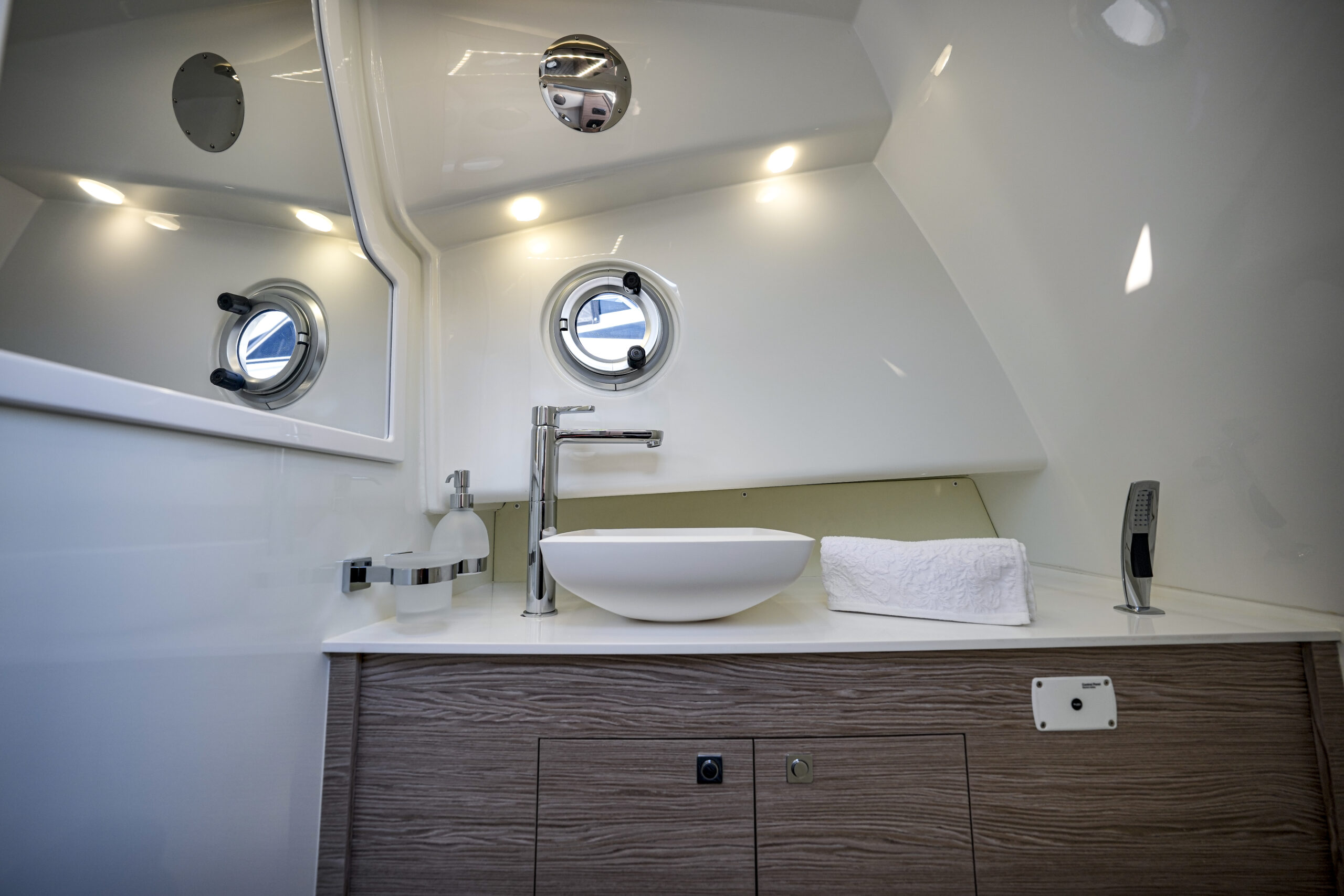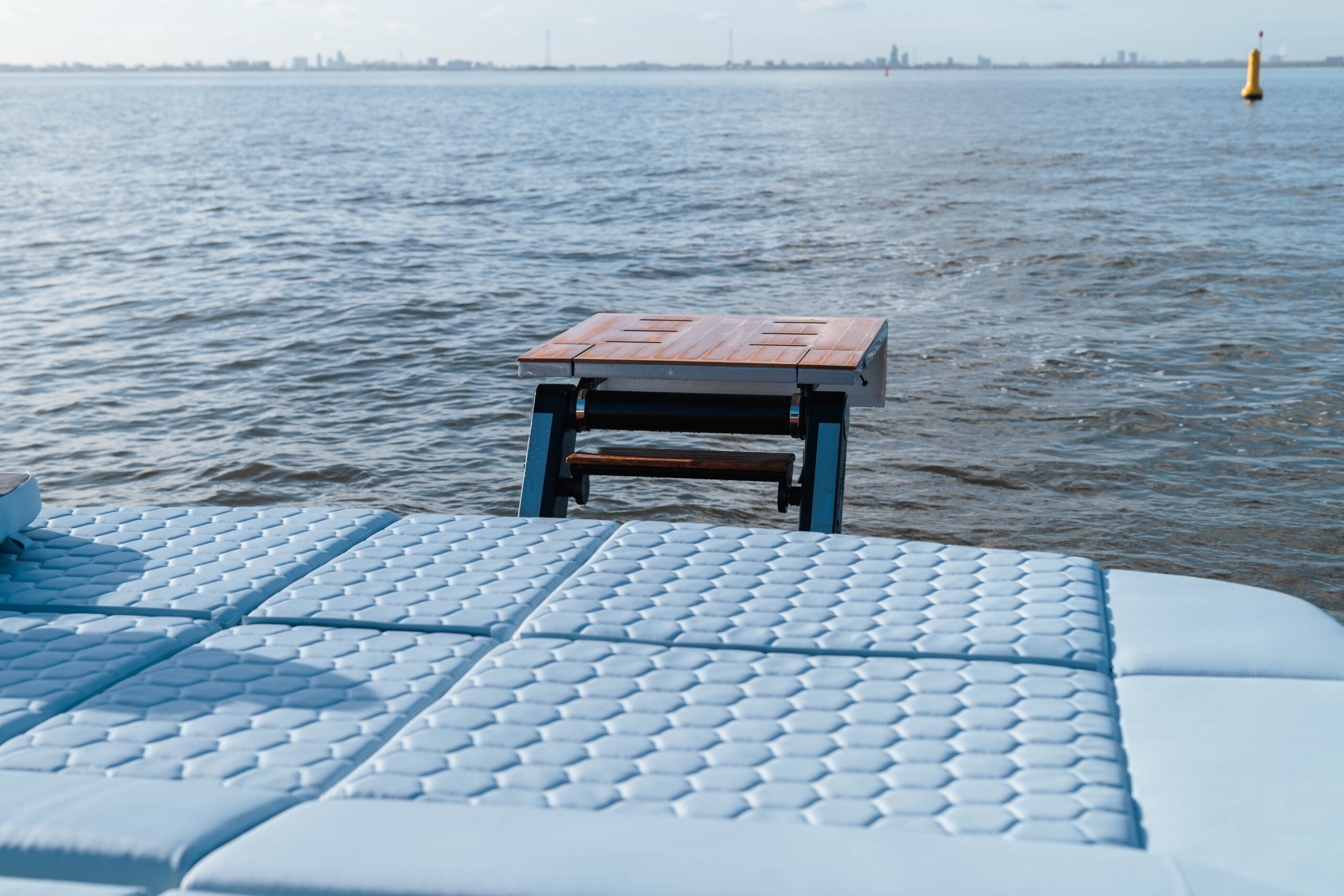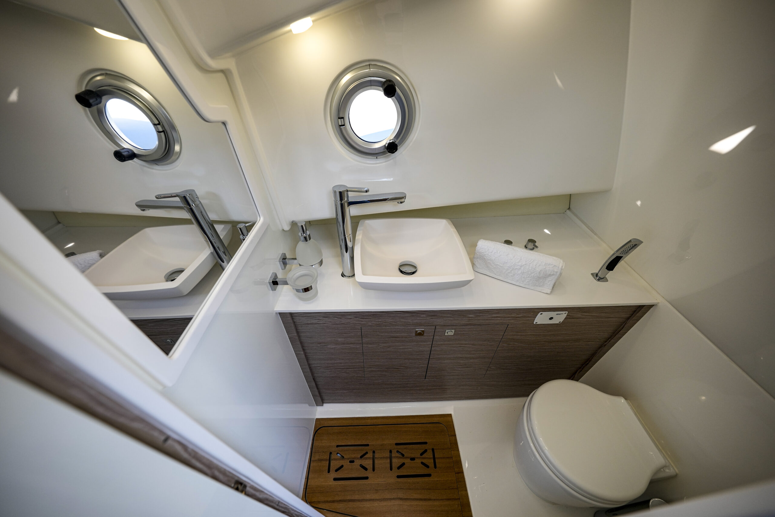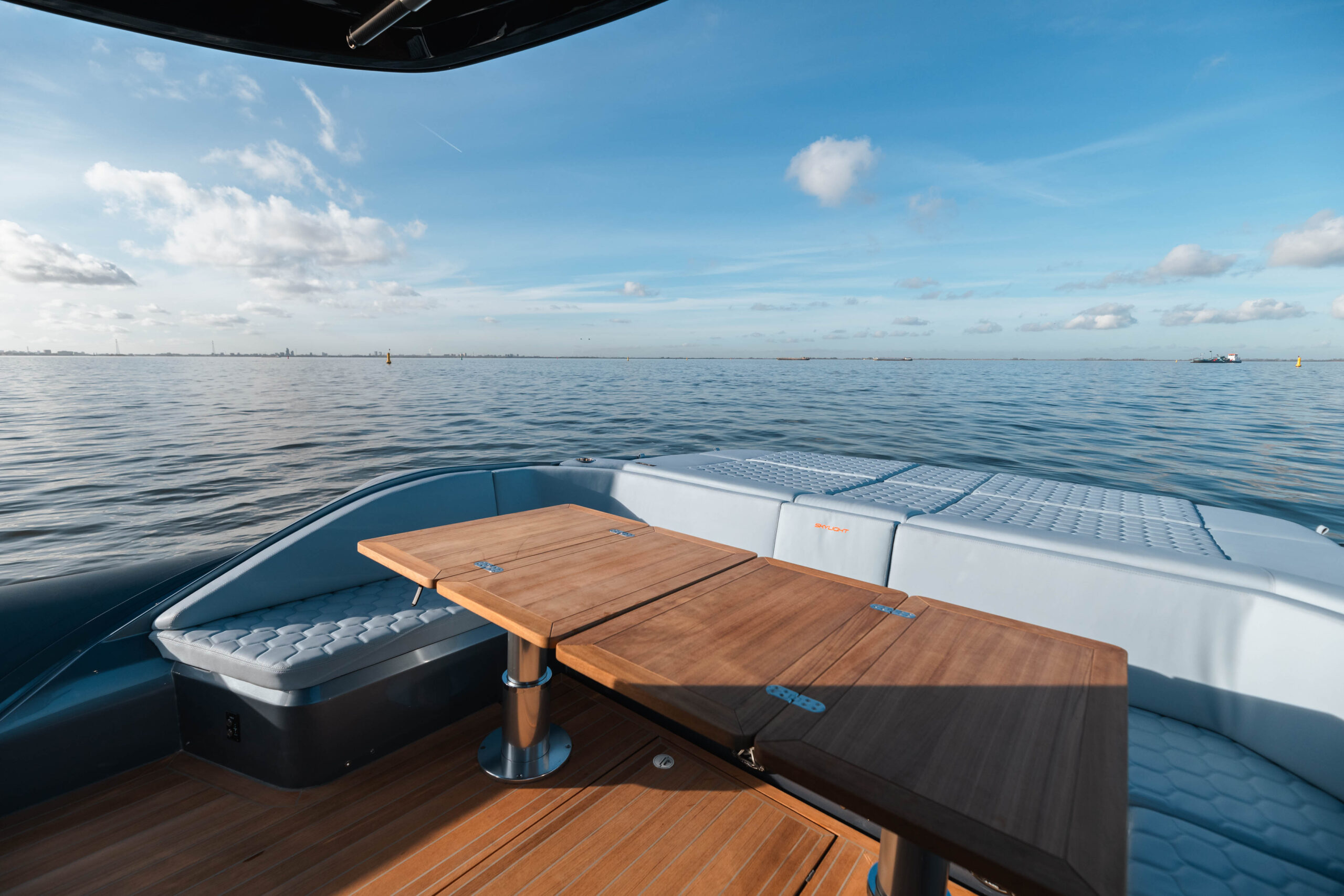 Die Sacs Strider 13 hat ein begehbares Teakdeck, eine Cockpitbar und einen großen Tisch aus Teakholz. Ein Highlight dieser Strider-Boote ist die Schwimmplattform. Eine große Fläche mit Teakholz bietet viel Platz zum Entspannen. Die Strider 13 ist außerdem mit einer elektrischen Badeleiter ausgestattet, um den Spaß an Bord mit viel Spaß im Wasser zu erweitern. Die Sacs Strider 13 ist mit großen Sonnendecks am Bug erhältlich. Eine geräumige Kabine Unterdeck in der Mitte des Schiffes ist mit einem riesigen Doppelbett und einem eigenen Bad ausgestattet.