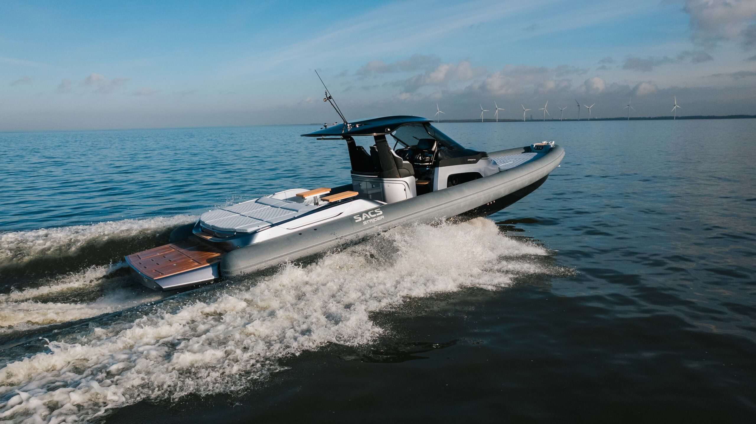 Rib-Boote sind bekannt dafür, schnell, sportlich, aggressiv und schlank zu sein. Strider Boote haben diese Linie mit den Adjektiven elegant, luxuriös und prestigeträchtig erweitert. Die Strider 13 ist das neue SACS-Modell für diejenigen, die keinen Kompromiss zwischen Leistung und Komfort suchen. Die Sacs Strider 13 kann sowohl als Tender für eine größere Yacht als auch als Verfolgerboot dienen. Sie bietet Platz für bis zu 16 Personen und allen Gästen einen hohen Komfort an Bord. Sie ist ein perfektes Boot, um mit Freunden oder der Familie eine gute Zeit zu verbringen für einen Tag oder sogar auch eine Nacht.